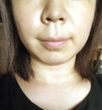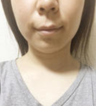 A子さん「施術当日の夜に撮影した写真です。腫れはないですが、注射跡が少し見えます。洗顔時に触るとちょっと痛くて硬いのがわかります。 」少しだけ注射跡が見えますが言われてみないと気づかない程度ですね。すでに顔のラインがほっそりして見えます!