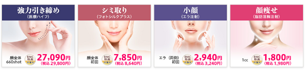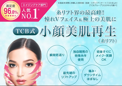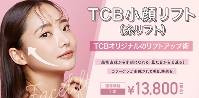 | TCB(東京中央美容外科) | TCB小顔リフト(1本)13800円 TCB式小顔美肌再生モニター57050円 |