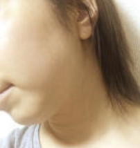 A子さん「施術当日の夜に撮影した写真です。腫れはないですが、注射跡が少し見えます。洗顔時に触るとちょっと痛くて硬いのがわかります。 」少しだけ注射跡が見えますが言われてみないと気づかない程度ですね。すでに顔のラインがほっそりして見えます!
